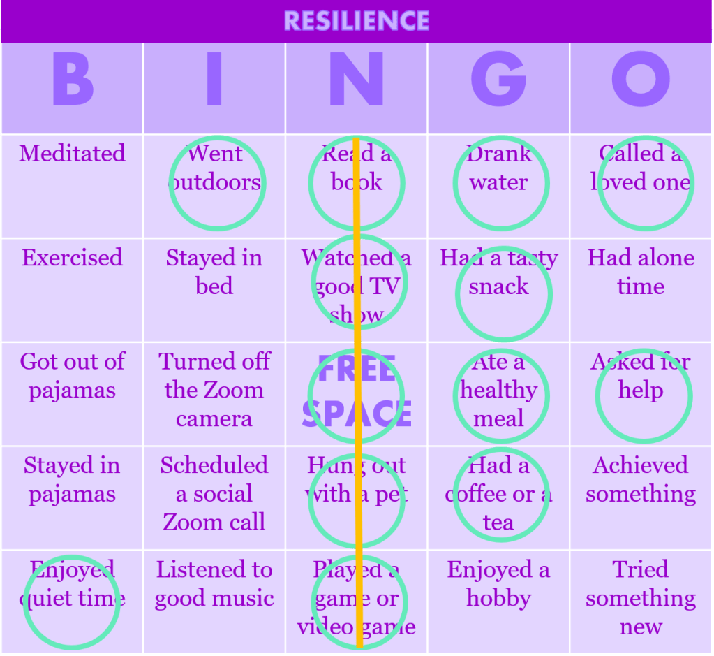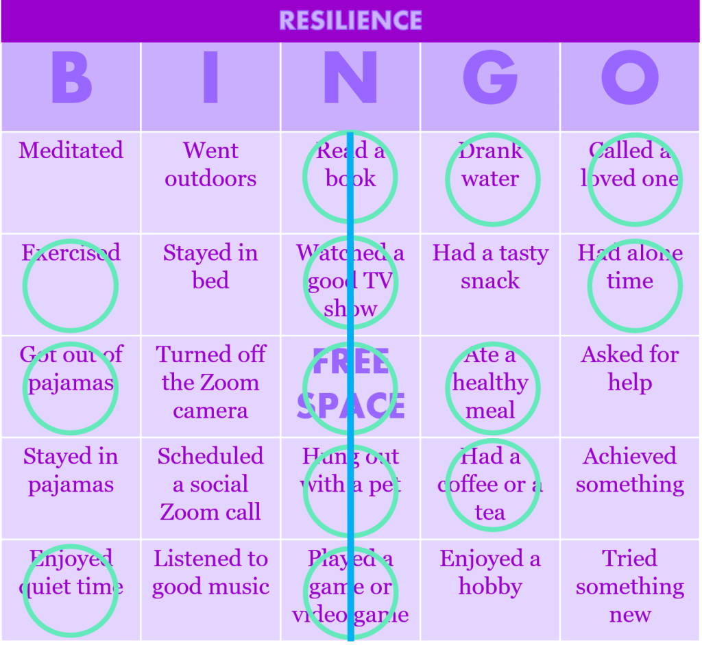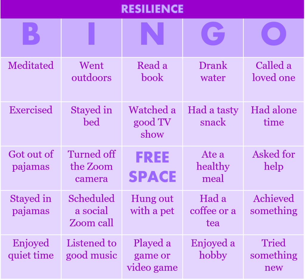 Honestly, I’ve been feeling crappy. I’m over it with this pandemic (don’t worry – I’m still masking and whatnot!), I’m tired, I’m burnt out. One silly little thing I put together to help myself get resilient is this bingo board: