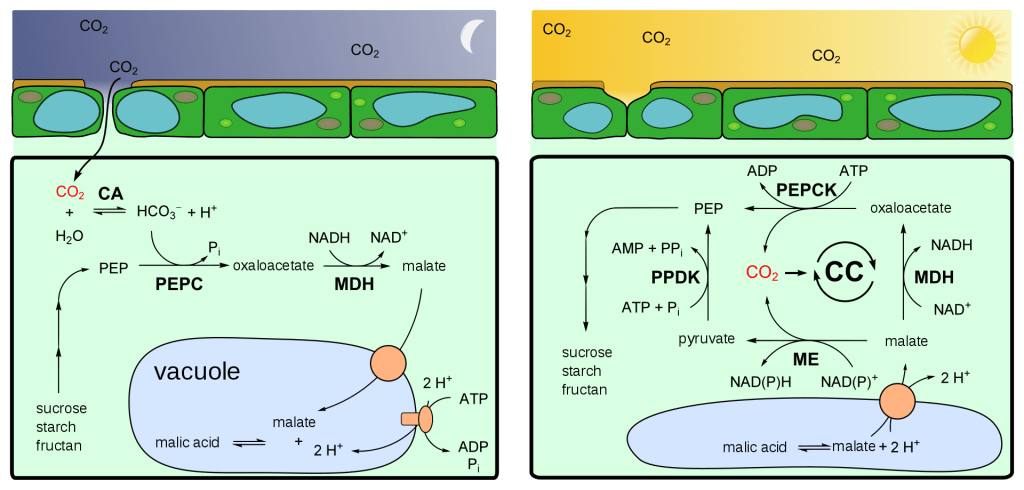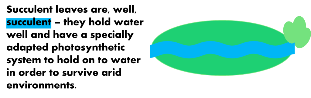This brand of photosynthesis allows plants that live in hot, dry climates to lose less water. Because of this extra boost of water rationing, succulent leaves are especially good at providing water (and other nutrients) to the baby plantlets that grow when those leave are severed from the mother plant.