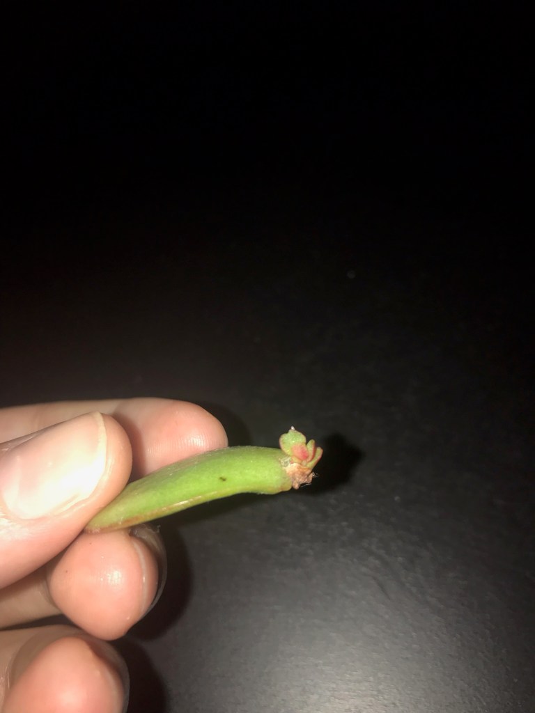 So once a leaf is severed, chemicals tell the end of the leaf that was once attached to the larger plant to scab over, or callus. Without a callus, it seems, plantlets can’t grow; once the callus forms, “new root and shoot apical meristems” (Root Gorelick piece, page 55 of the .pdf) can form and a new plant can be born!