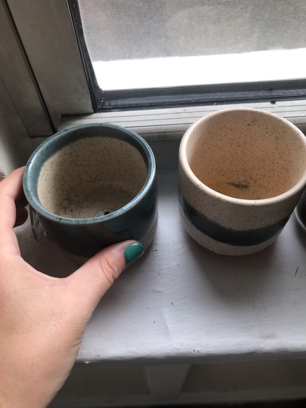 The pots: I’m using two hygge candles that I burned a while ago but never used as planters because of my big move back to the city. I bought these more than a year ago at Phipps, a.k.a. one of my favorite places in the world. (It’s a botanical garden in Pittsburgh that does different shows during the year; my favorite of all time thus far is the Japanese cultural show. I’ll post pictures from it one of these days!)