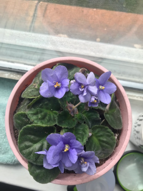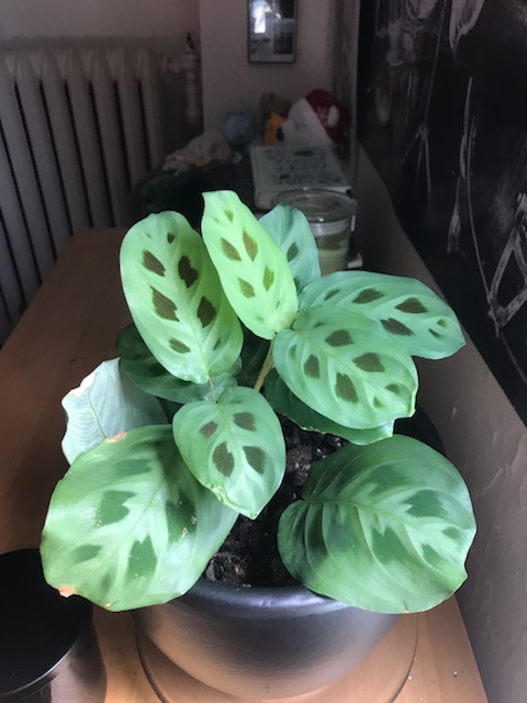 I’ve been thinking lately: what is it about plants? Well, for one thing, there’s something to watching them do well. My prayer plant’s grown two new leaves in the last month and is growing well; the new cat grass I just planted less than a week ago is already huge! My little jade is officially ready to try soil, I have health African violets, and I’m working on rescuing my palm. The catnip is coming back strong and even has some new growth, although there are a few dead leaves that could use pruning. And I’m growing yet another little pot of cat grass in an old KT tape container.