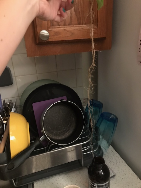 It’s safe to say nutrient levels were wishy-washy in the water. So I think the basil shouldn’t need all that extra root in it’s new, more nutrient-ensured home. Thus I’m less concerned about root loss and think it’ll be fine to plant this dude in the other hygge pot.