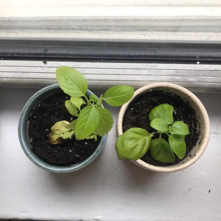For now, the basils will be staying in the same eastern window they grew up in. Once they’re a little bigger and the weather starts acting like actual autumn weather, I might shift them to a south window.