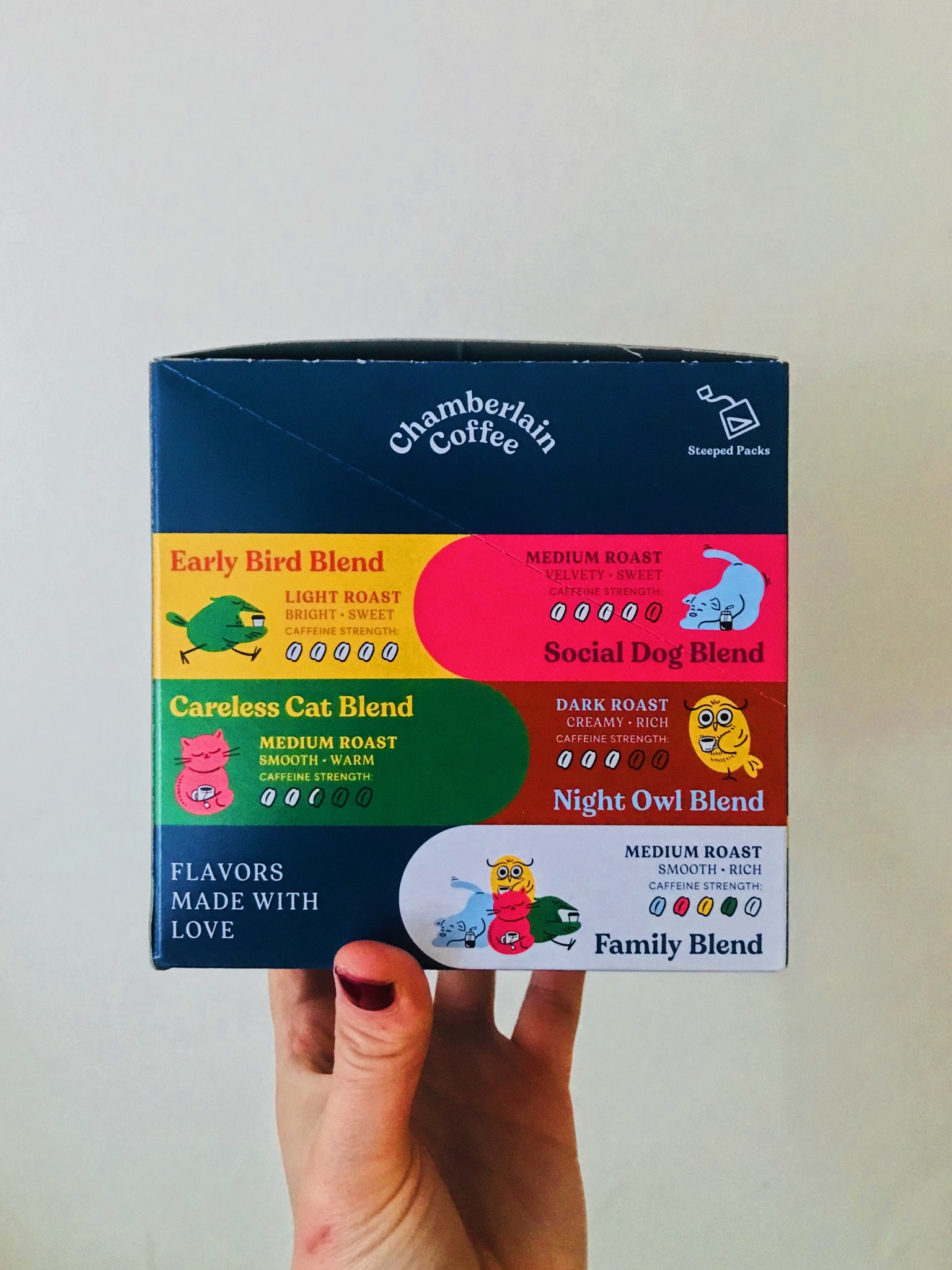 For those who might not know, Chamberlain Coffee is a line of coffees from Emma Chamberlain, who’s Youtuber I honestly know next to nothing about. I’m not into Youtubers. The only reason I ended up with this box of coffee is that I needed something I could travel with for a weekend of hiking and cabin-sleeping.