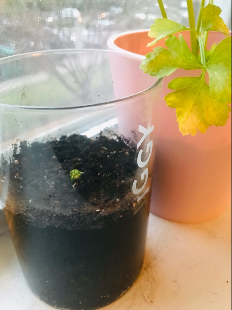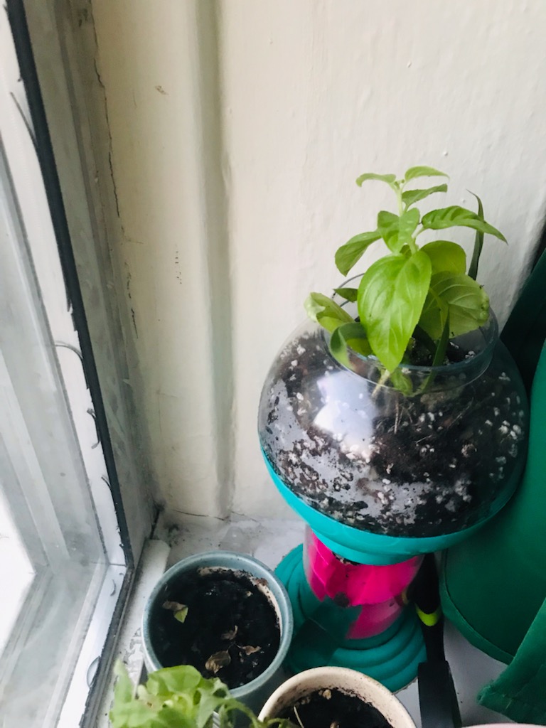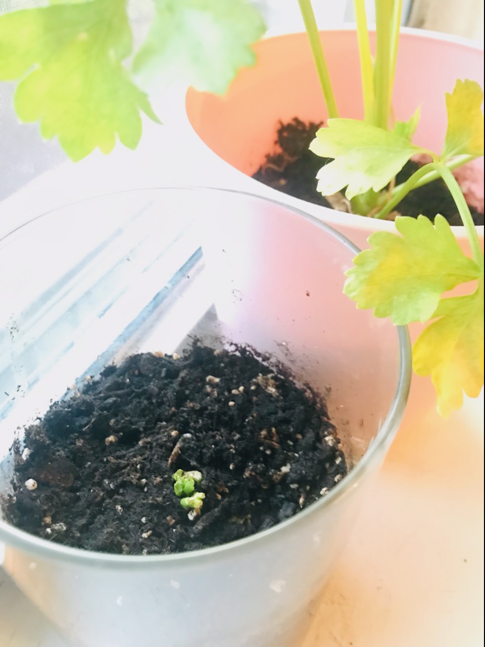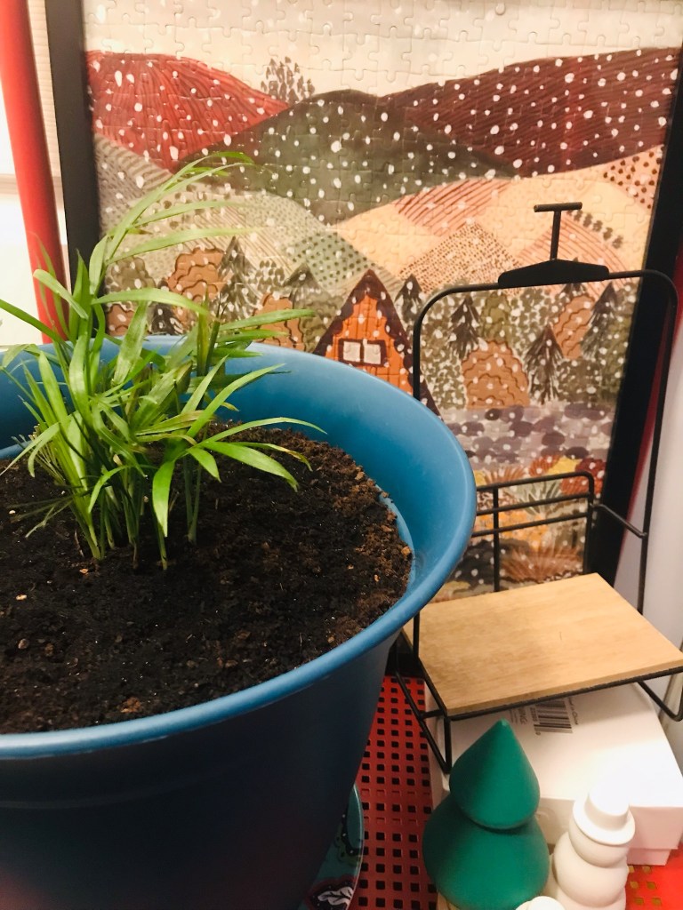 Interestingly, as I was soil-potting my newest celery baby today I found a spiderette I’d somehow missed, buried in my potting soil bag! It now has a home in a repurposed bubble gum machine.