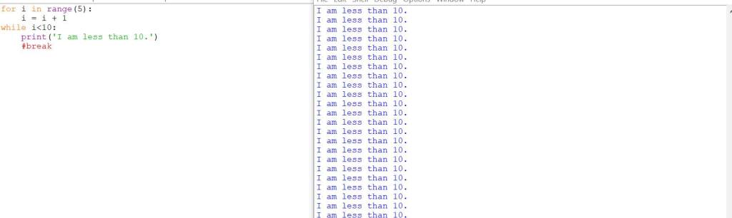 Let’s try and make it print ‘I am less than 10’ five times, which was my original intention.