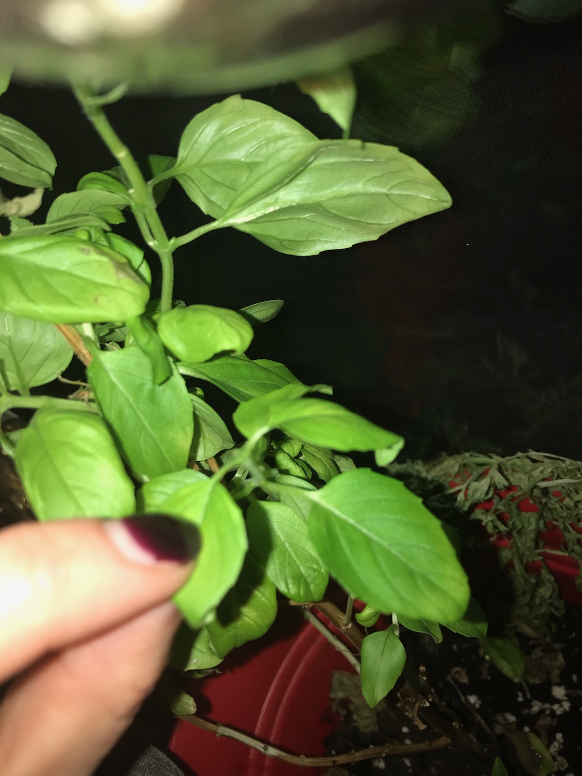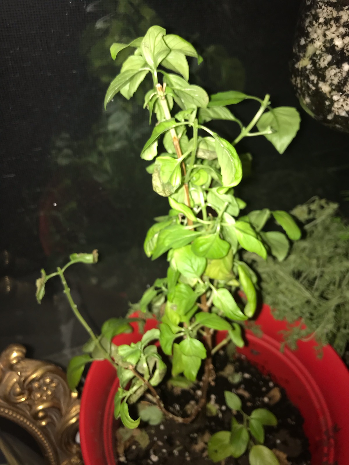 Now, my basils are alive but janky-looking. I read recently that pruning basil plants a certain way makes them bushier, and gosh mine could sure use whatever help they can get. This is the video I watched and how I’ll be pruning my basil from now on: