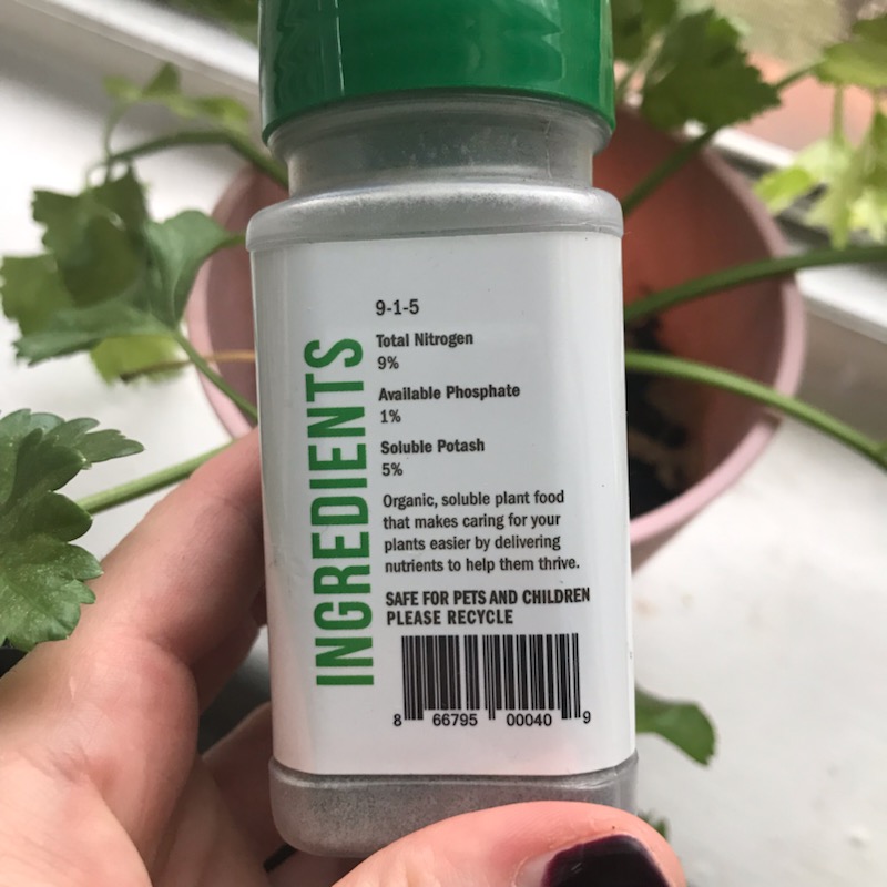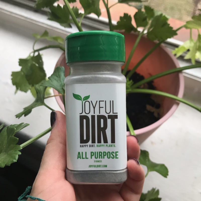 Although some plants it’s said shouldn’t be fertilized in winter, I’ve been finding that my celery shoots through the roof with joy if fertilized about once a week – no more than that, sometimes less. Look at all that growth! I always use Joyful Dirt fertilizer for my houseplants.