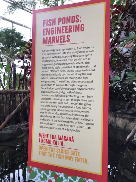 So, as you can read above, fish ponds using sluice gates to let small fish in and fatten them up for eating is a feat found nowhere else in the world but the Hawai’ian islands. What a brilliant way to support a human population without disrupting a nonhuman ecosystem. Plus, I love fish and this made my mouth water a little.