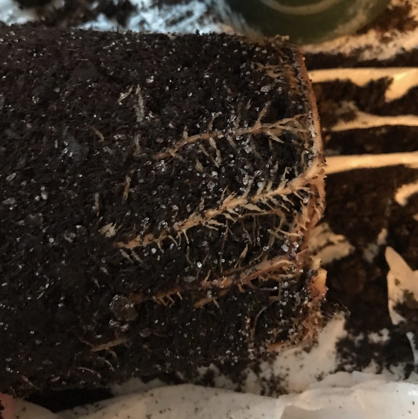 Normally I’d do a lot more root work than this. I like to get the roots nice and loosened from any clod-up dirt. I did loosen the bottom more than the top, as evidenced by the dirt all over the place.