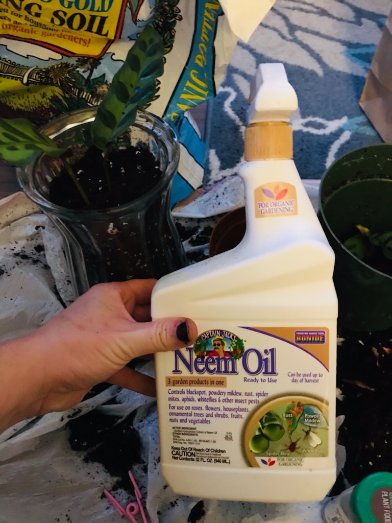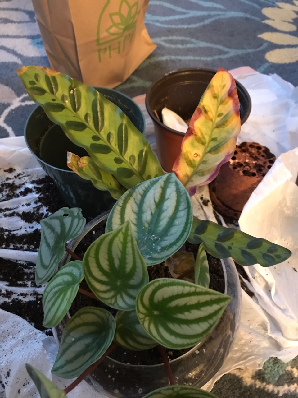 A few weeks ago I got watermelon peperomia and another calathea, which I planted together and kept in my bathroom – which was a mistake. The plants didn’t have enough space to air out and the calathea got a white, powdery mildew which not only brough gnats but smelled gross up close. I treated it with neem oil up until I had time for repotting, which was today.