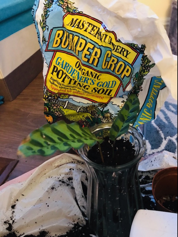 Let me leave you with this after my long day of solo plant time. Sometimes you plan and plan and the universe just laughs at you. Friends bail, you get an infected cut on your thumb. Dirt falls outside the lines, and you have to vacuum. That’s life. I’m anxious and I like to have control but I’m learning to with the flow on some things, because otherwise we just won’t survive the stress. Go with the flow a lil’ bit today, folks.