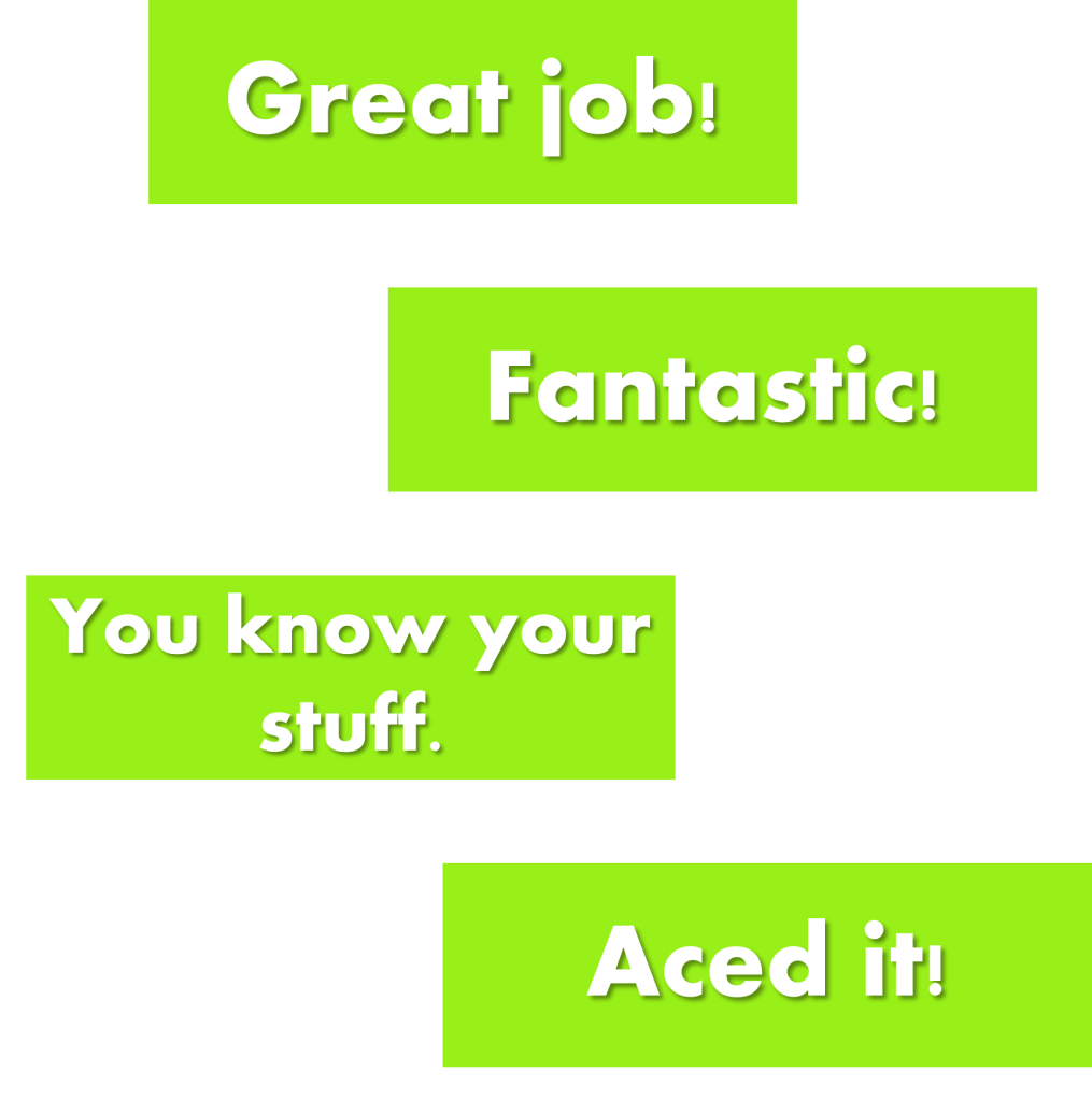 With motivation, there is also always reinforcement to consider. (There is also reinforcement with regards to holding onto information; that’s a different use of the word, and more on that later.) When I worked at expii desinging quiz questions, each answer had an ‘explanation’ section that would pop up when a student chose that answer. For the incorrect answers, we wanted to focus on pointing the student toward the correct answer. And, equally important, in the explanation for each correct answer I included some positive reinforcement! I don’t know about you, but getting a 100% on a test is even more rewarding when you get a lollipop with it – or, in the case of e-learning, a sweet little pop up that says “Fantastic job!”