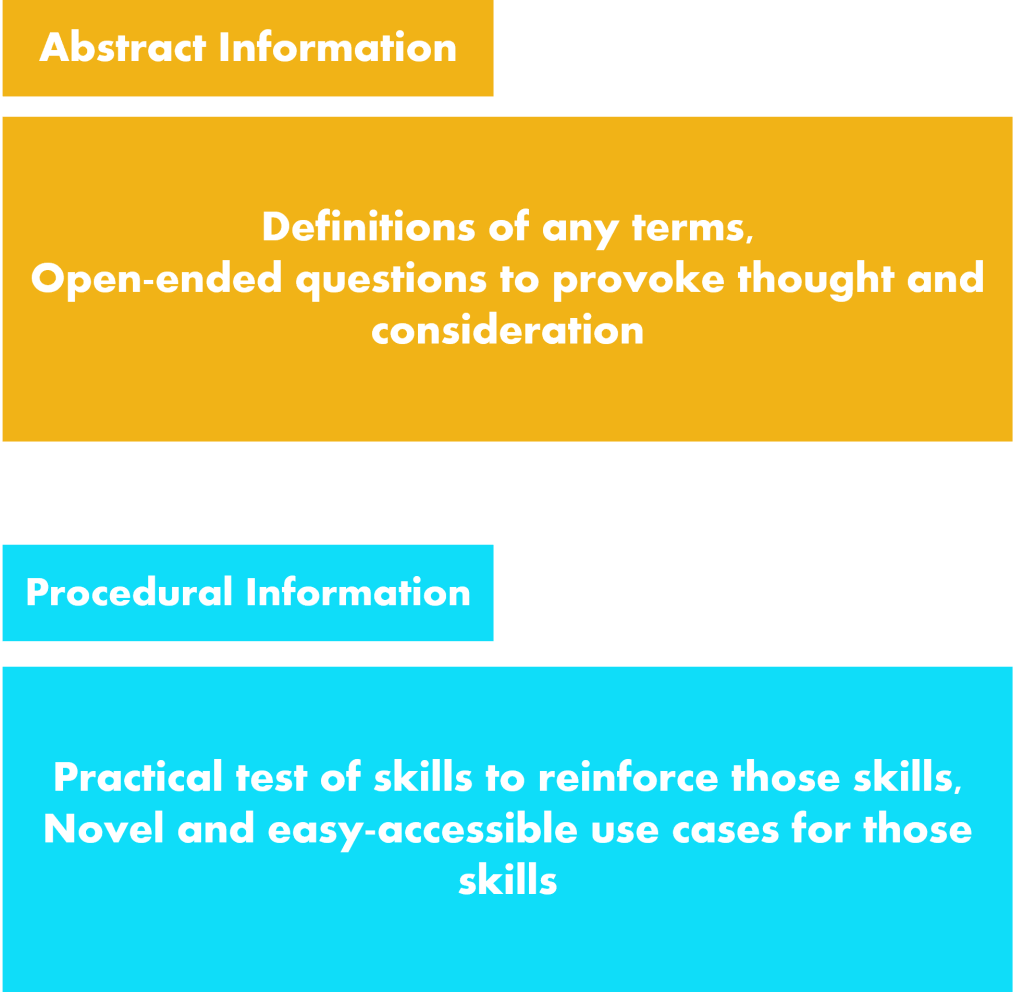 I wanted to reach a bit further and hone the skill, so I’ve been reminding myself of learning theory/theories. I’ve run into such theories before; my undergrad is in neuroscience which means I took quite a few psychology/behavior courses in my day, and these theories of course came up. Basically what I wanted to get out of this pseudo-research was: How can I help people learn what they want to learn? How can I design materials in a way that works with people’s brains?